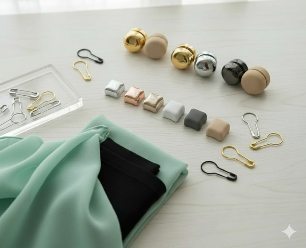 Our collection of essential hijab accessories is designed for style, comfort, and security.